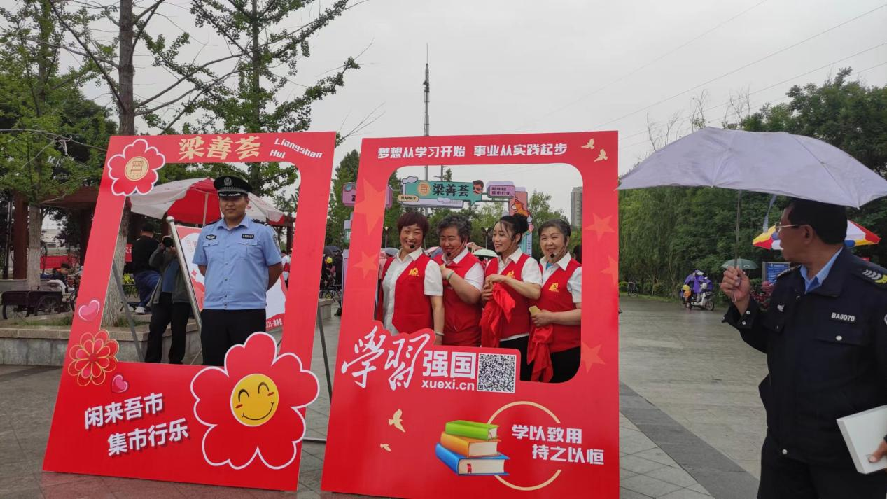 居民下楼遛个弯儿,就能轻松享受到各项志愿服务。近日,山东省梁山县梁山街道幸福街社区开展“梁善荟”公益集市活动。“‘学习强国’里面有许多免费的精品学习资源,不光你自己可以学到很多知识,也非常适合给孩子做教育资源。”00后志愿者关俊喜正在向家长讲解“学习强国”学习平台的各项版块功能。