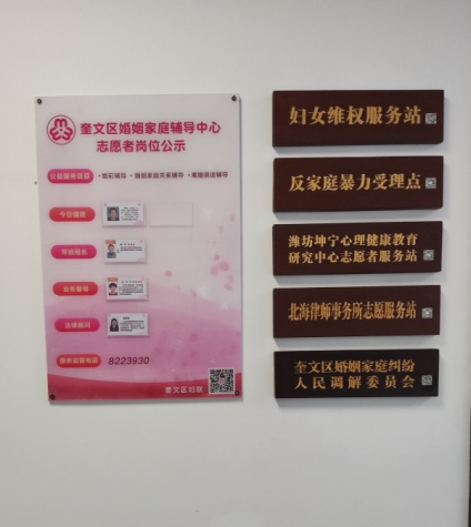 区婚姻登记中心聘请了热心社会公益事业、有威望的人士担任奎文区结婚登记特邀颁证师,在一些重大节假日或喜庆日子,比如“520”“521”“七夕”等结婚登记高潮,对有意向参加集体婚礼的当事人,免费颁发结婚证书,举办简约、文明、时尚的集体颁证仪式,提升婚姻登记的庄重感、仪式感。2022年5月20日,奎文区民政局局长亲自为新人颁发结婚证书,既满足新人对于仪式感的要求,又大方得体,具有纪念意义。大力推行婚姻登记服务全免费政策,通过政府购买服务的方式,免费为有需求的当事人提供照相服务,节省群众办事时间。设立婚姻登记咨询台,将婚姻登记的政策法规、登记程序、注意事项等内容上墙公示,“一次性”告知。推行婚姻登记“全国通办”,婚姻登记服务更加人性化、便利化。区婚姻登记中心开发线上志愿服务,于每月在候登大厅明显处张贴公益课堂二维码,线上开展心理疏导、法律咨询、婚姻辅导等公开课,线下成立奎文区婚姻家庭辅导中心志愿者团队,线上线下合力推进移风易俗。建设一体化婚姻辅导工作室,整合民政、妇联等部门资源,引入和美婚姻家庭辅导中心,借助婚姻辅导室成立妇女维权服务站、反家庭暴力受理点、潍坊坤宁心理健康教育研究中心志愿者服务站、北海律师事务所志愿服务站为婚姻当事人提供融情感辅导、婚育知识、父母课堂、婚姻家庭辅导等于一体的综合性服务,为群众婚姻幸福和家庭稳定保驾护航。