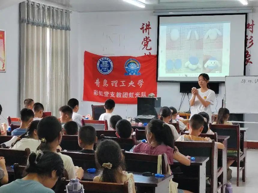 在“趣味黏土捏捏乐”课程上,志愿者们手把手的教孩子们如何将手中的黏土揉捏成型,并鼓励孩子们充分发挥自己的想象力和动手能力,柔软的彩泥在两只小手间搓、粘、切、捏等动作摆弄下,各种各样的彩泥片刻功夫一个个形象生动的泥塑图案就呈现在了眼前。志愿者还将做的最好的玩偶粘在黑板上,引发孩子们相互比拼的激情,课程在一片欢声笑语中落下帷幕。
